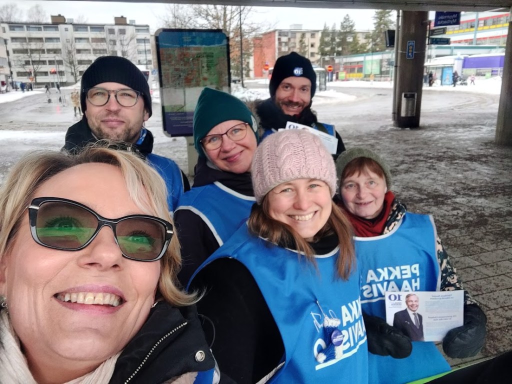 Alkutalvena puuhasin aika paljon myös Haaviston presidenttivaalien kimpussa. Meillä oli aivan mahtava tunnelma kampanjassa ja oli ilo saada tehdä työtä hyvän ehdokkaan nimissä. Toreilla jaettiin esitteitä, kuumaa mehua ja vaalitietoutta kansalle. Muutaman tunnin seisominen napakassa pakkassäässä opetti myös torimyyjän tavan pukeutua; hyvin kesti kylmyyttä tämä tyttö.