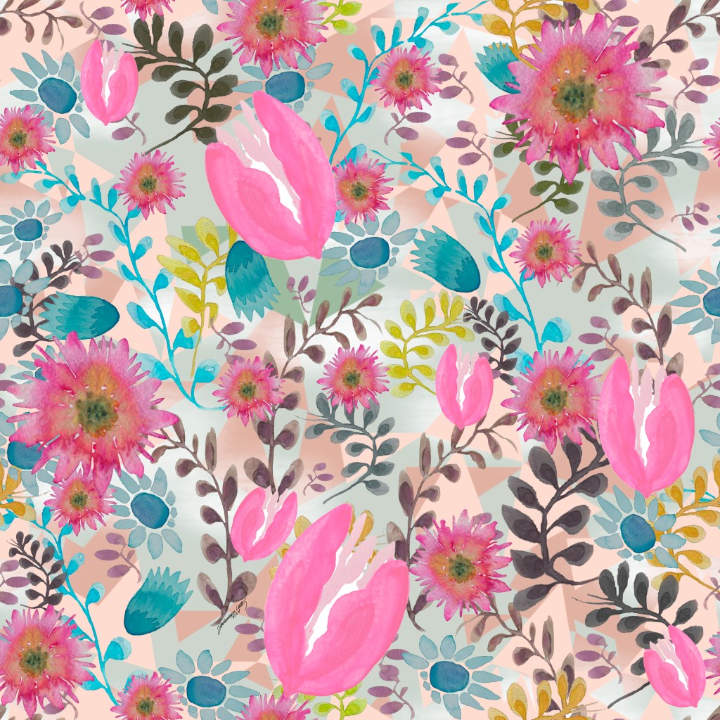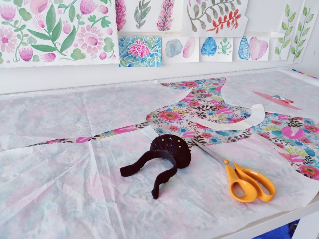 Olen nyt vuoden aikana opetellut kuosisuunnittelun alkeet ja päässyt jo tilaamaan ensimmäiset kankaat; onpa niistä jo mekotkin itselle ommeltu. Kaivoin akvarellivärit vuodelta 1987 esiin ja innostus maalaamiseen ja kuosisuunnitteluun lähti ihan käsistä, positiivisella tavalla!