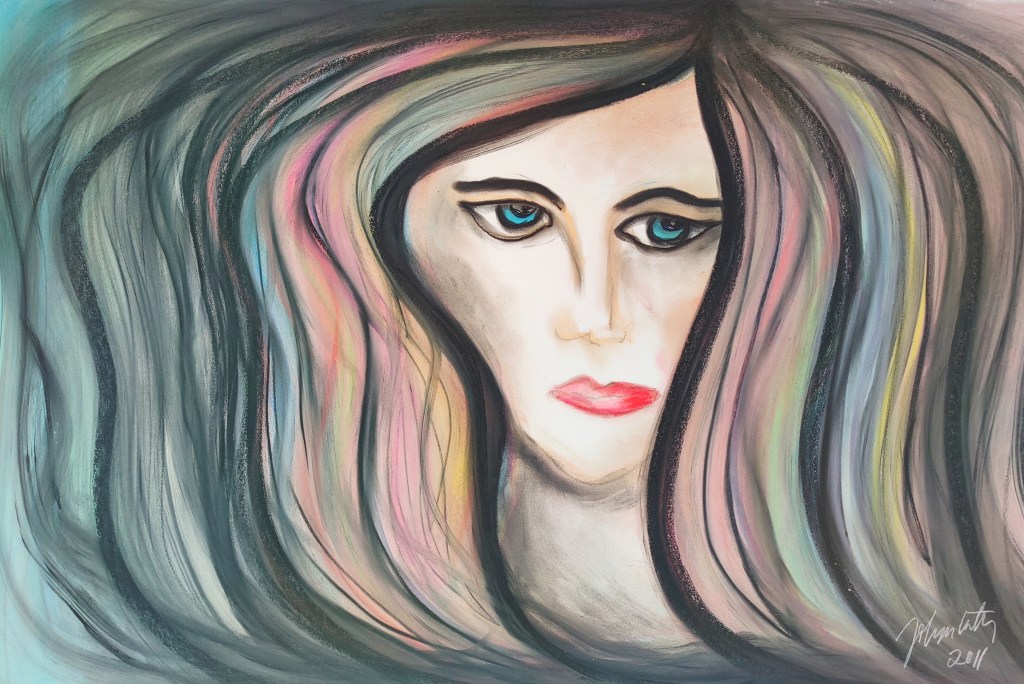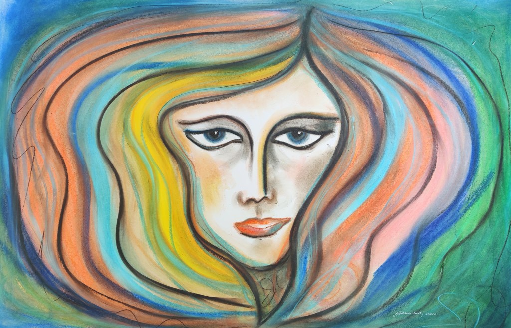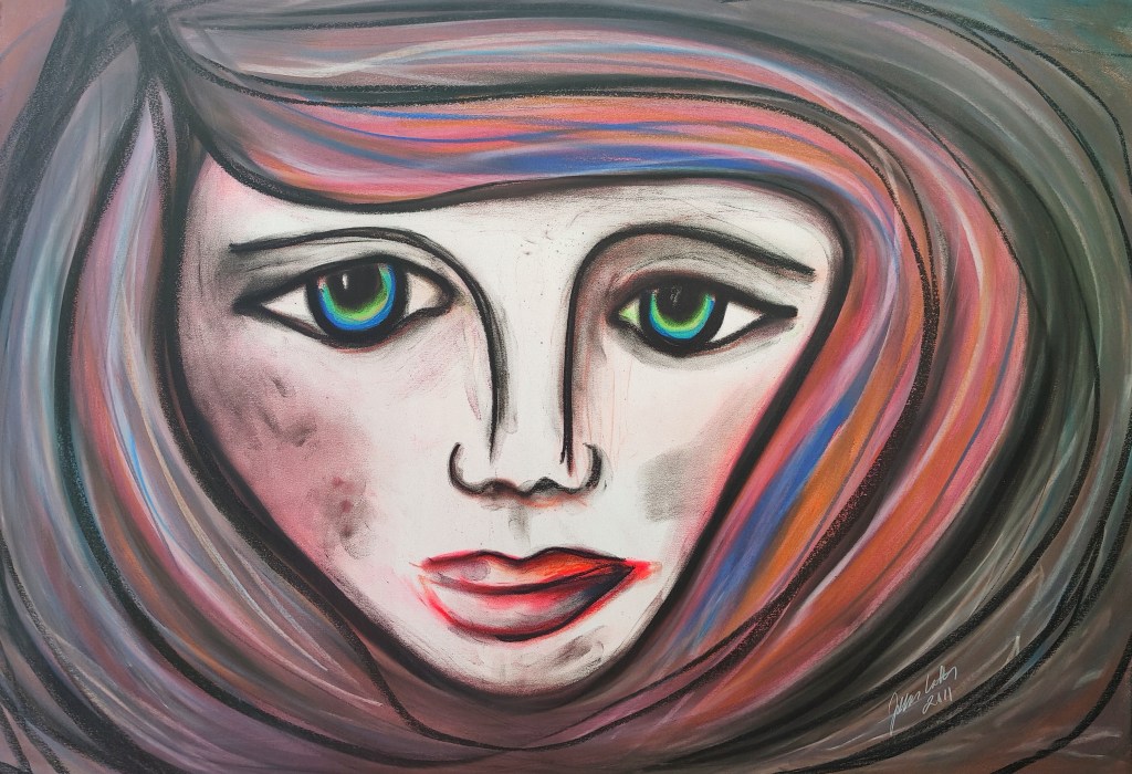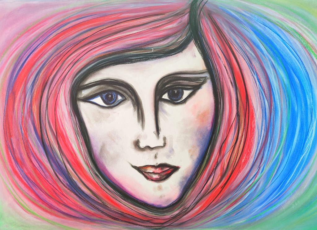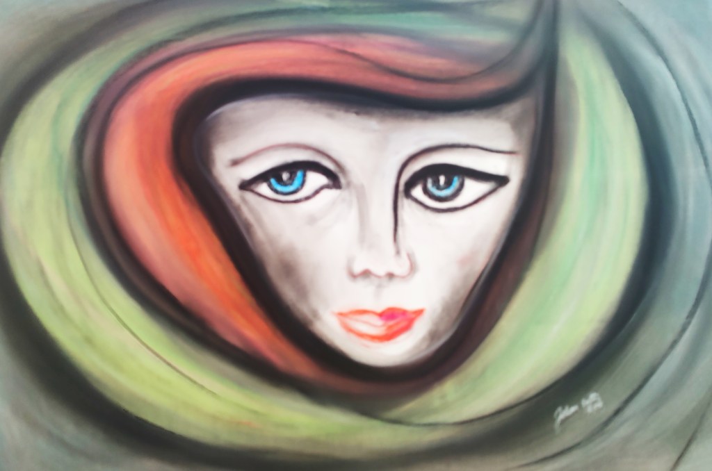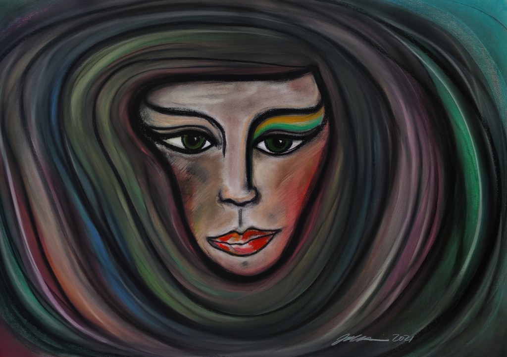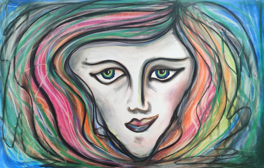Vihreä nainen Koko 65 x 95 cm Pastelli v.2021