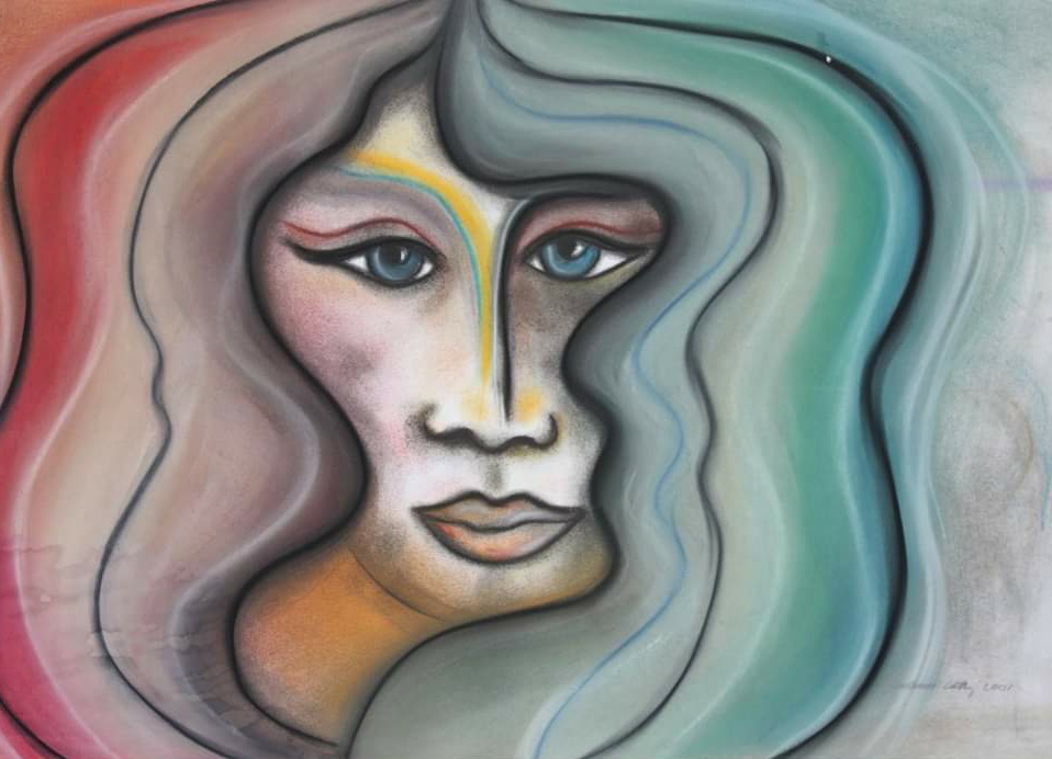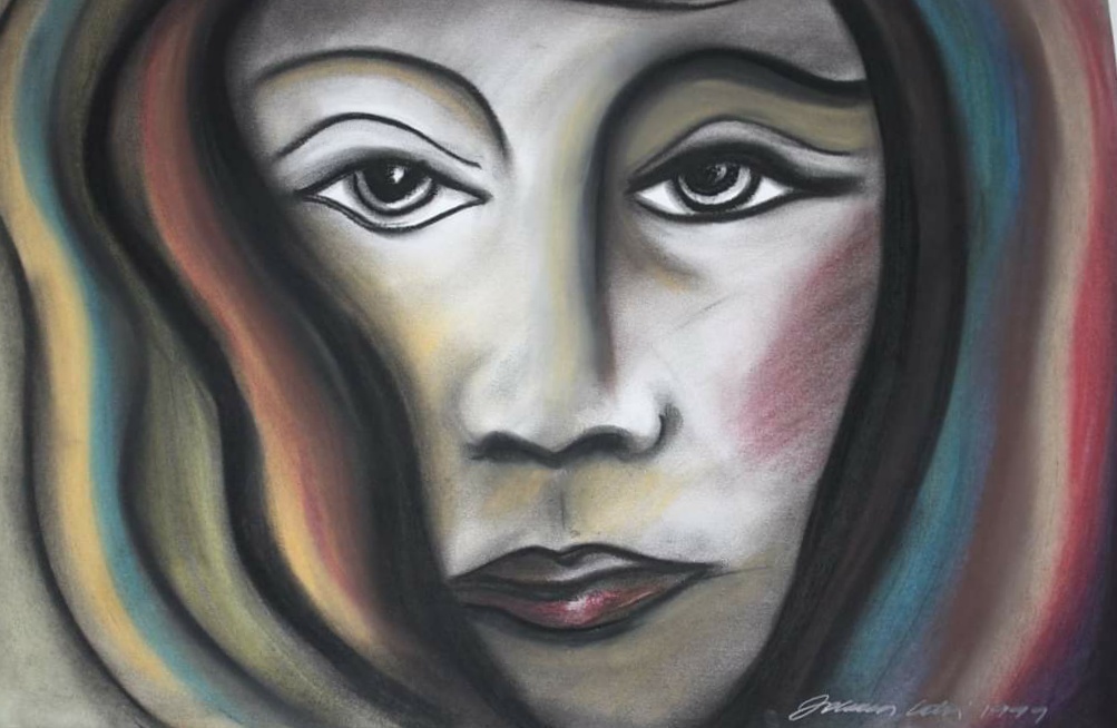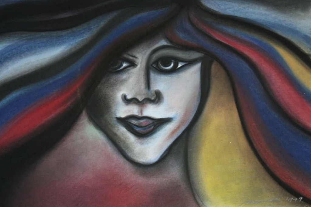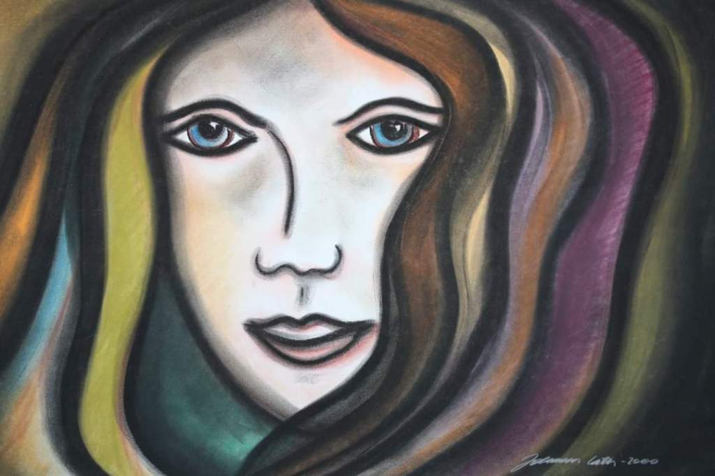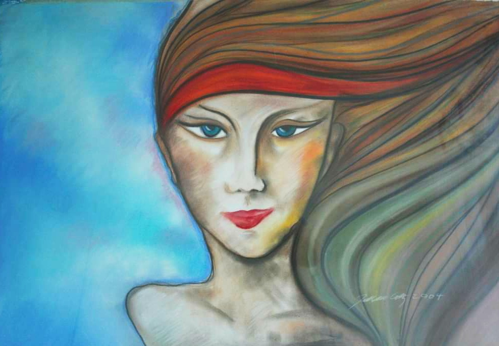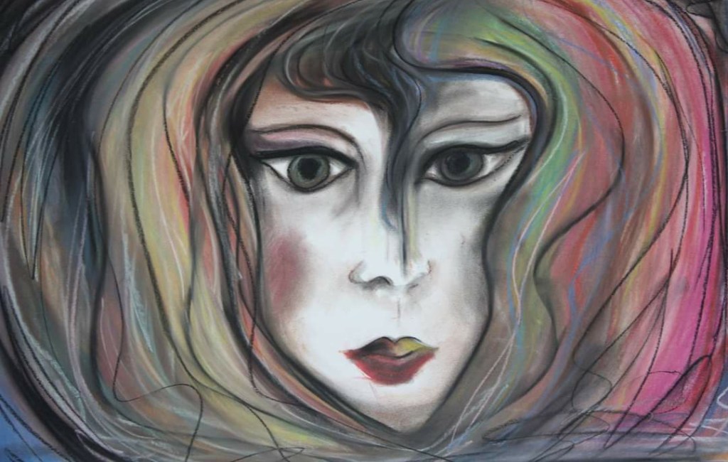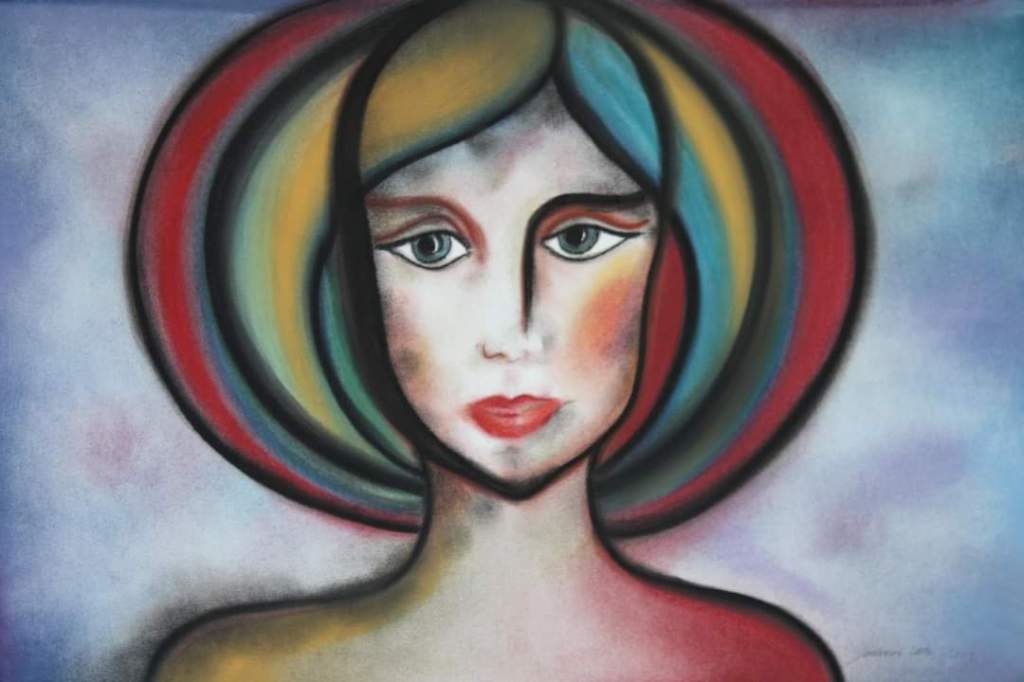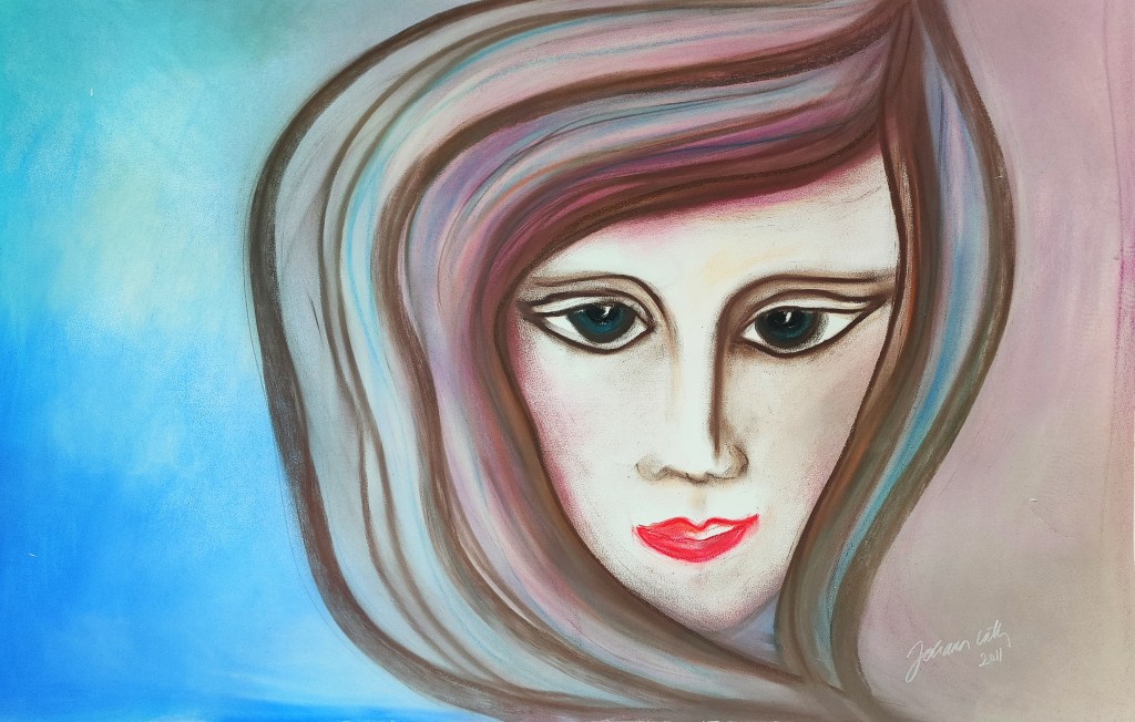 Vihreä nainen Koko 65 x 95 cm Pastelli v.2021